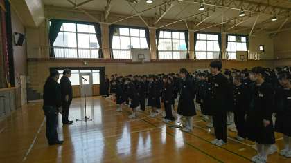校長先生からのお話、表彰伝達があり、休業中の過ごし