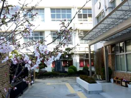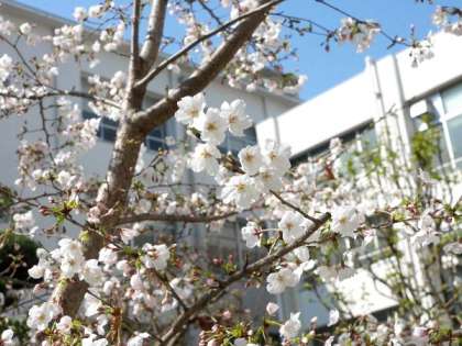明日の入学式を待っていたかのように、校庭の桜の花びらが咲き始めました。とてもきれいですね。