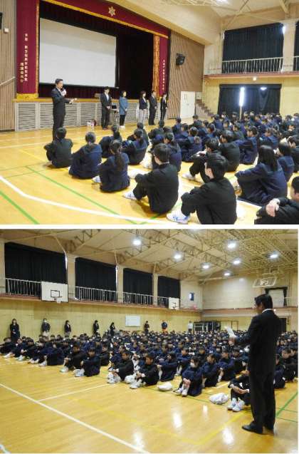 校長先生から始業式にあたってのお話を行いました。校長先生からは、入学式で新入生へのメッセージと東三国中の4つの約束事のお話を行いました。年度がわりの節目について、「竹は節目があるから成長する」と、1年間の始まりを大切にして目標をもってがんばってほしいとお話しました。また、4つの約束事の「挨拶」の意味について、「挨」は押す。心を開くという意味があり、「拶」は迫る。人に近づくという意味があり、自分の心を開き、相手の心に近づいていく積極的な行為で、人間関係をスタートさせるコミュニケーションの第一歩であるとお話しました。そして、東三国中で大切にしてほしい「あたりまえのことを、あたりまえにする」では、「凡事徹底」というお話をしました。誰でもできる平凡なことをしっかりすることが大切なのです。