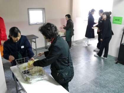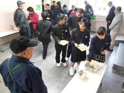 東三国中学校では、元気アップのボランティアさんが毎日、給食の後片付けのお世話をしてくれています。校長室で写真撮影!いつも本当にありがとうございます。これからもよろしくお願いいたします。