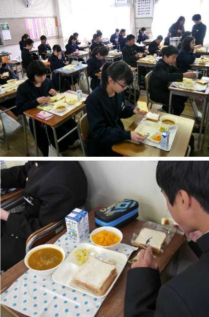 今日の献立はビーフシチューと食パン、缶詰みかんです。今年から牛乳が紙パックになり、ゴミの分別をさらにしっかりする必要があります。3つに分類して捨てましょう。よろしくお願いします。