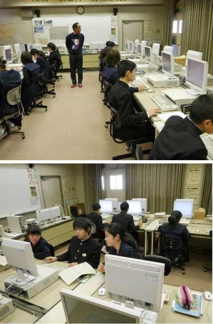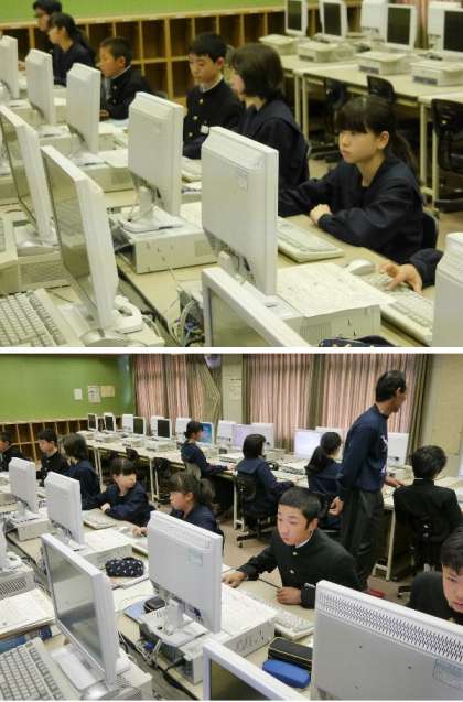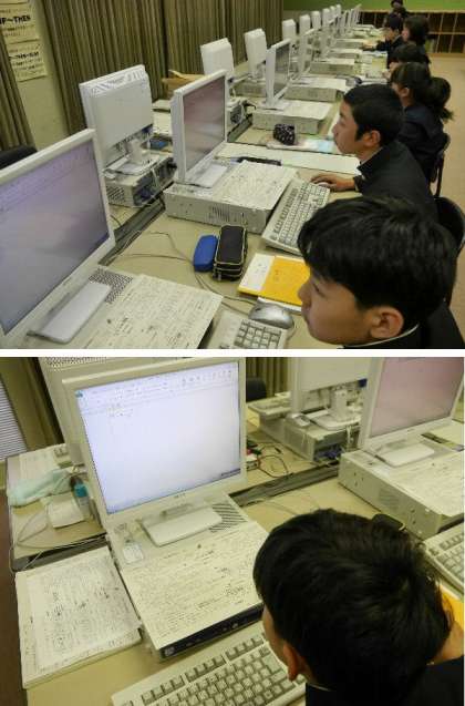 2年生の技術の授業はパソコン室で行われていました。表計算ソフトを便利に使っていました。