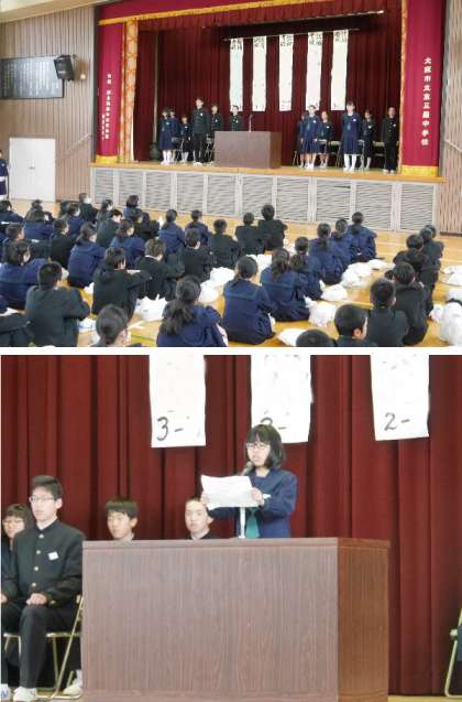 「あいさつ運動」「校内美化」「地域の方々とのかかわりを深める」「ボランティア活動の活性化」「よりよい学校を作る」などの抱負を発表してくれました。