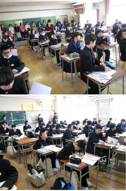 5時間め授業は参観でした。ご来校いただいた保護者の方々ありがとうございました。日ごろの授業の様子をご覧いただけたと思います。生徒たちはいつもと変わらぬおちついた様子でがんばっていました。