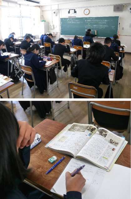 教室での授業では、先生の板書をしっかり書くことも大切なことです。ただ写すだけでなく、ノートの使い方も大切です。そのときの先生の言葉で「要注意」の部分をメモとして書いておくと、後で復習のときやテスト勉強のときに役立つよ。