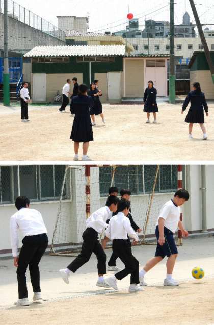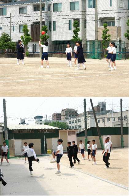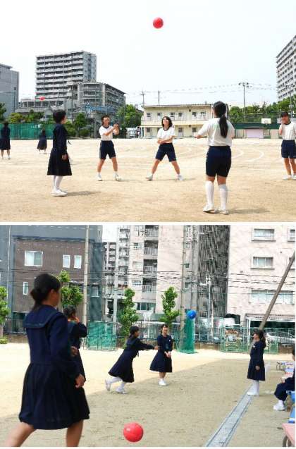 給食後の昼休みはボール遊びを運動場でしています。元気いっぱい身体を動かすことも大切です。