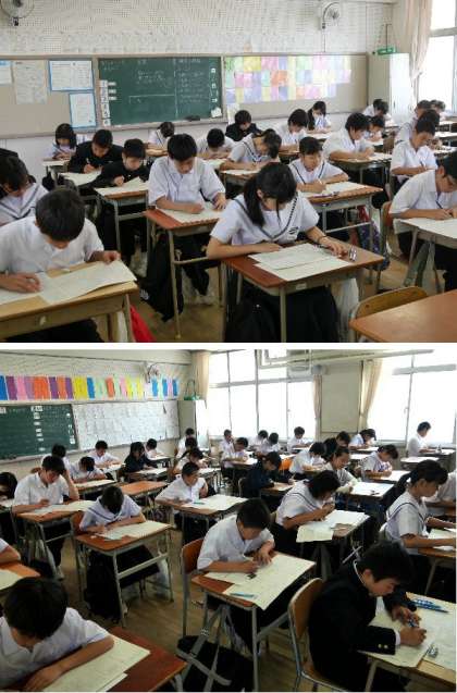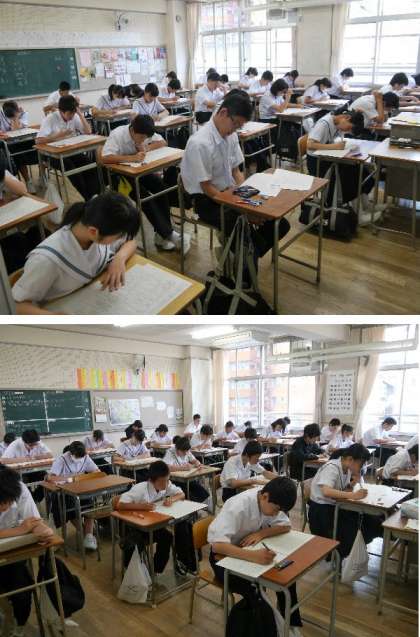 今日と明日は1学期の中間テストです。国語、理科、英語(3年は音楽)のテストがありました。どの学級でも真剣な姿勢で机にむかって取り組んでいました。1年生にとっては初めてのテストですね。最後まであきらめずに取り組んでください。
