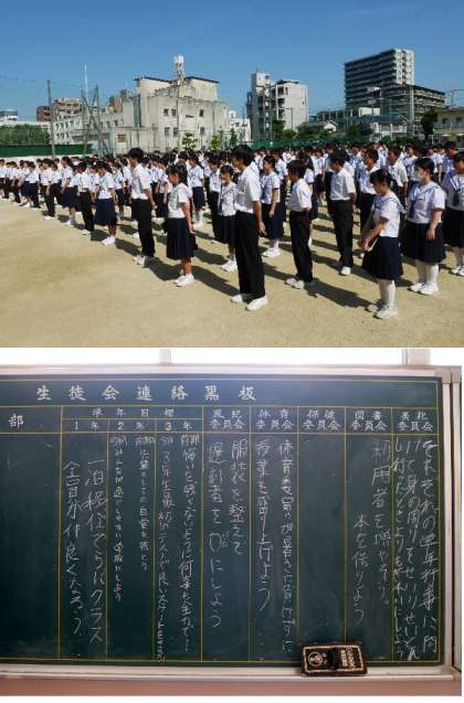 今日の全校集会では、校長先生から、プラス思考とマイナス思考についてお話しました。生徒会の各専門委員会よりの報告もありました。