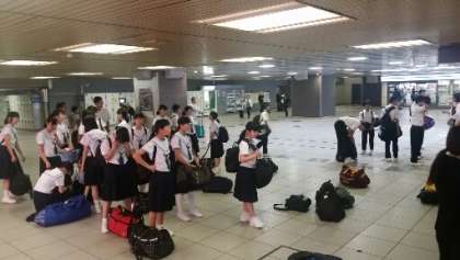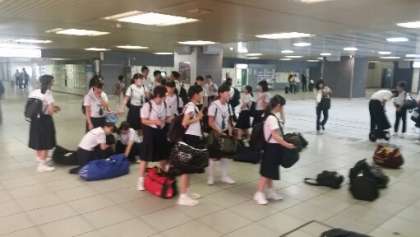 今日から3日間の修学旅行が始まります。新大阪駅に生徒が集まってます。