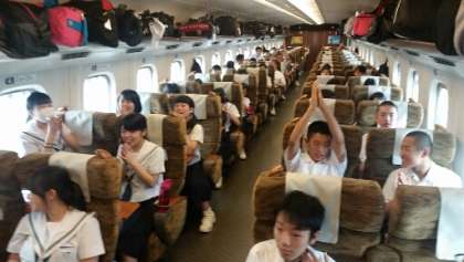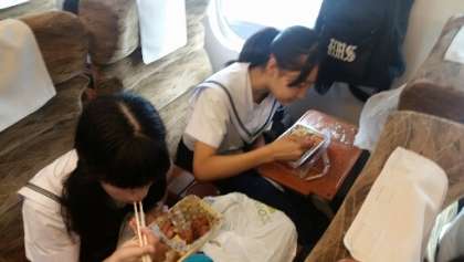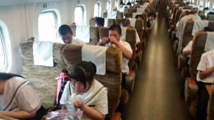 新幹線が出発すると、いただきます、でお弁当をいただきます。