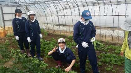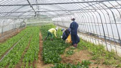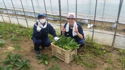 ホウレン草を収穫中です。