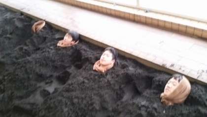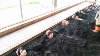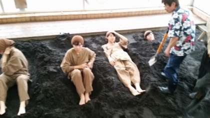 お風呂に入って、砂風呂を体験しました。気持ちいいね。