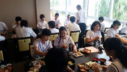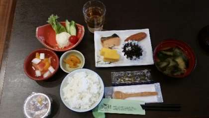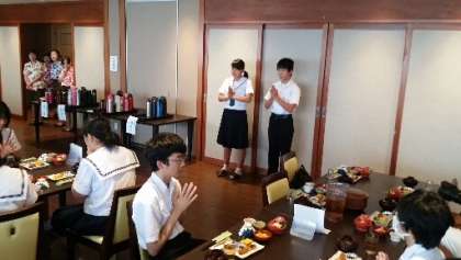 いただきます。朝食の時間です。しっかり食べましょう!