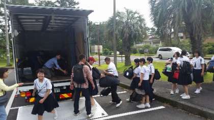 宿舎を出発して、鹿児島市内に向かいます。