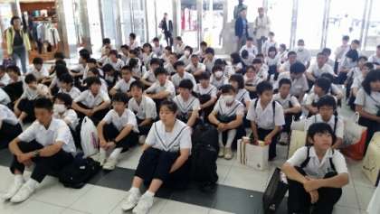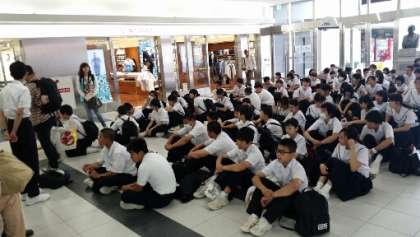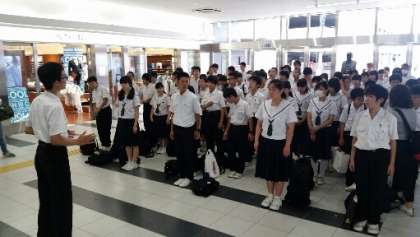全員遅れずに鹿児島中央駅に集合です。さすが東三国中3年。