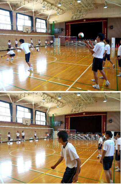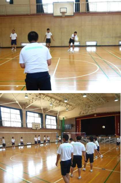 3年男子の体育はバレーボールの練習をしていました。上手に相手に届くようにサーブをうつのは難しいですね。よくボールを見てくださいよ。真ん中にあたらないととんでもない方向にとんでしまいます。
