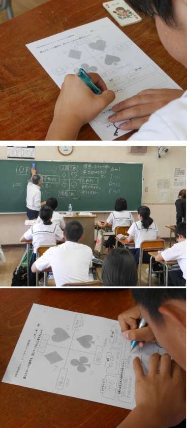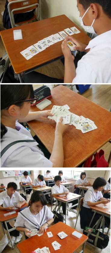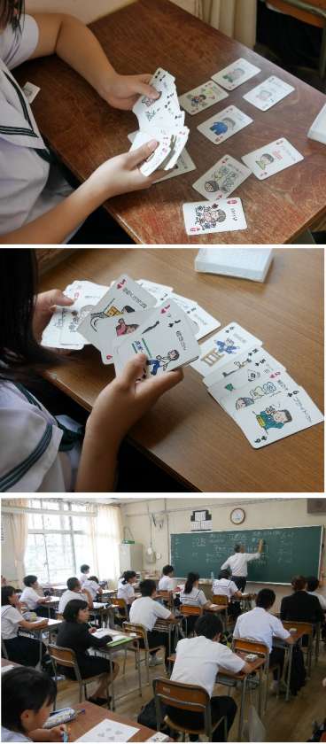 ヒューマンキャンパス高校の先生が出前授業にきてくれました。SPトランプとは、サブ・パーソナリティトランプの略です。人間のもつ様々な面を人格化させニックネームをつけてカードにしたものです。自分自身の性格や適性を把握して、効果的な学習スタイルを知るためのものです。生徒たちはカードから選んでいます。