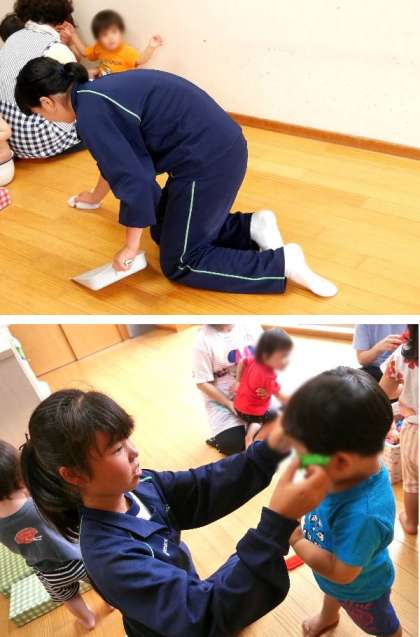 校区のつくしんぼ保育園では、幼児の世話をしている生徒たちがいきいきとしていました。がんばっていますね。