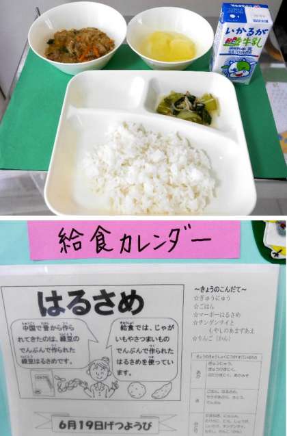 今日の献立は、マーボーはるさめ、チンゲンサイともやしの甘酢あえ、りんごの缶詰でした。マーボーはるさめはご飯ととてもあいます。