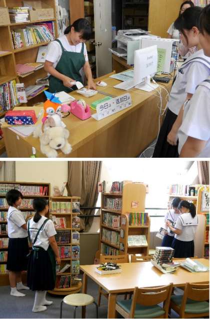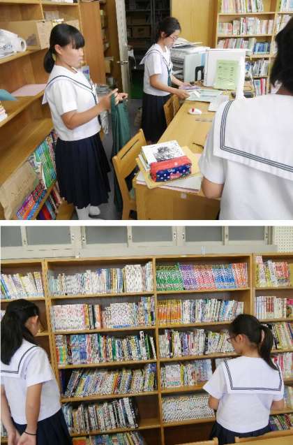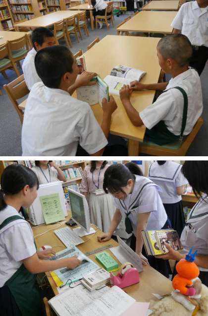 お昼休みの時間には図書館が開館されています。何人かの生徒たちが本を借りにきていました。教室でも昼食のあとに読書している人をよく見かけます。どんどん本を読んでみいきましょう。楽しみながら、豊富な知識や、考える力などがついていきますよ。