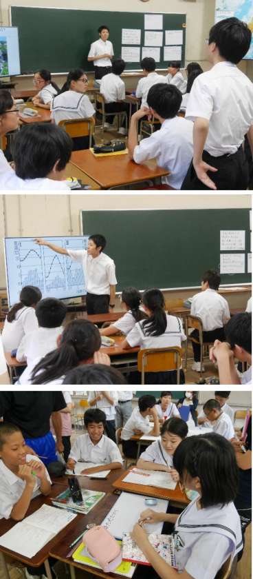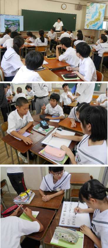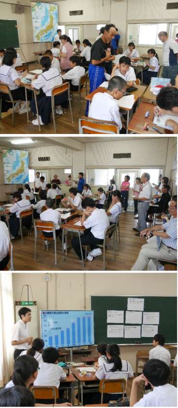 2年生の社会科の研究授業をおこないました。教育委員会からも先生にきていただき、先生がた全員が授業を参観しました。生徒たちは一生懸命に授業に集中し楽しく意欲をもって取り組んでいました。