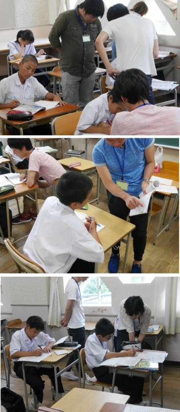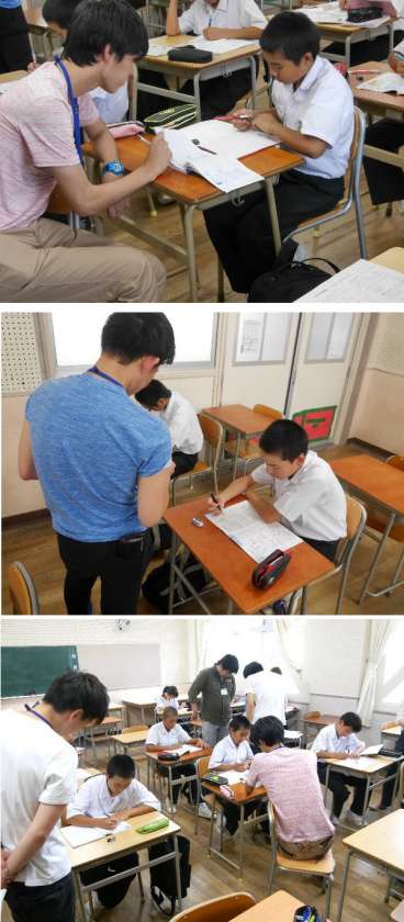 また、教育実習で来てくれていた先生たちも参加して教えてくれました。わからないところはそのままにせず、遠慮なく周りの人に聞いてほしいと思います。そしてテストで成果がでることを期待しています。