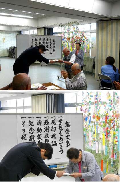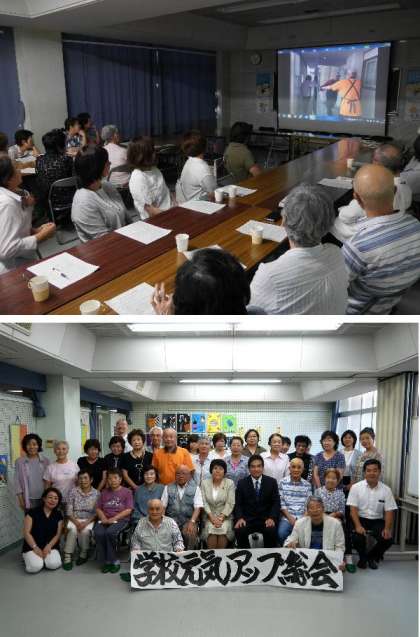 いつも学校支援にきていただいている元気アップボランティアの方々にお集まりいただき、学校元気アップ総会を開催いたします。学校長より感謝状をお渡しいたしました。また、活動報告などがビデオで上映されました。最後に記念撮影をおこないました。