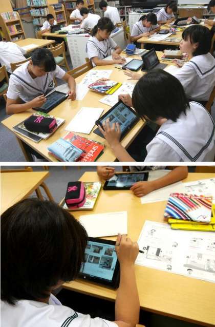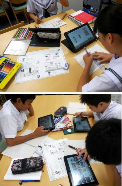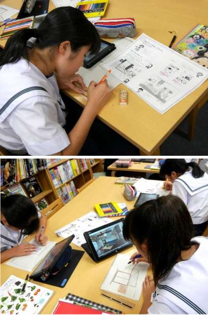2年生が家庭科の授業で自分の住まいづくりにチャレンジしました。タブレットを使って、インテリアなどはWEBサイトを参考に考えています。