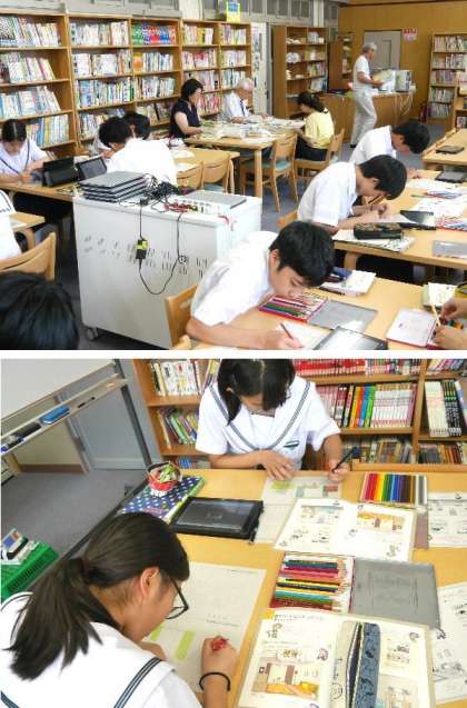 横では図書館支援に来られた元気アップボランティアさんが作業をしています。一緒に活動です。