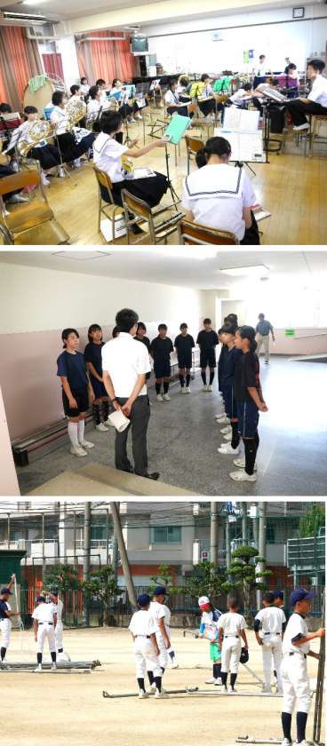 運動場や格技室、体育館と校内のいろいろなところで、生徒たちは部活動にがんばっていました。