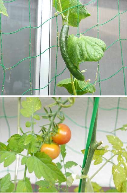 支援学級で育てているキュウリやミニトマトの様子です。大きなキュウリがおいしそうですよ。