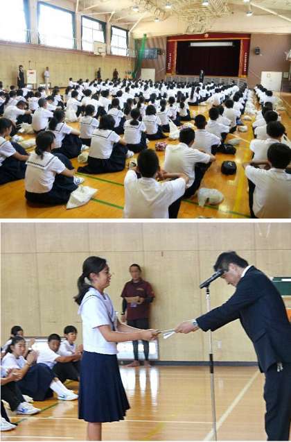 アメリカのモトクロス大会で優勝した2年生の表彰をおこないました。がんばってください。