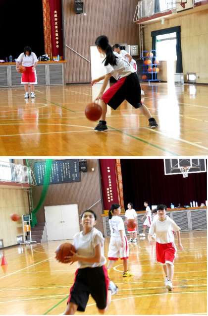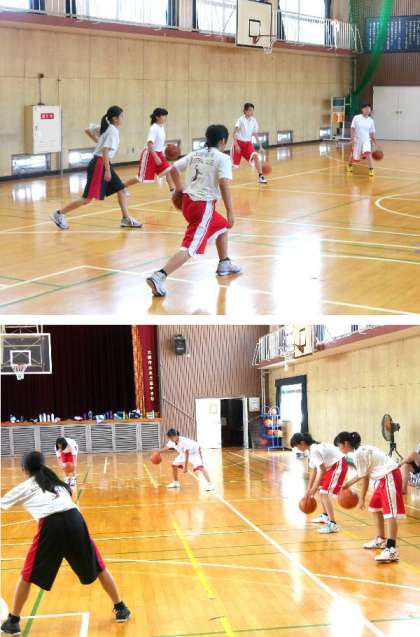 体育館では女子バスケットボール部が練習に汗を流していました。3年生は最後の夏なので気合が入っています。