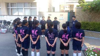 バレー部が練習試合に出発です。3年にとって最後の夏、気合をいれて頑張ります。