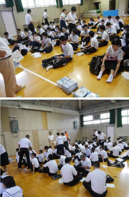 3年生の登校日が格技室で行われました。夏休みもあと1週間です。夏休みの宿題の提出とチェックが行われていました。計画的に進めることができたでしょうか。2学期が始まりますね!