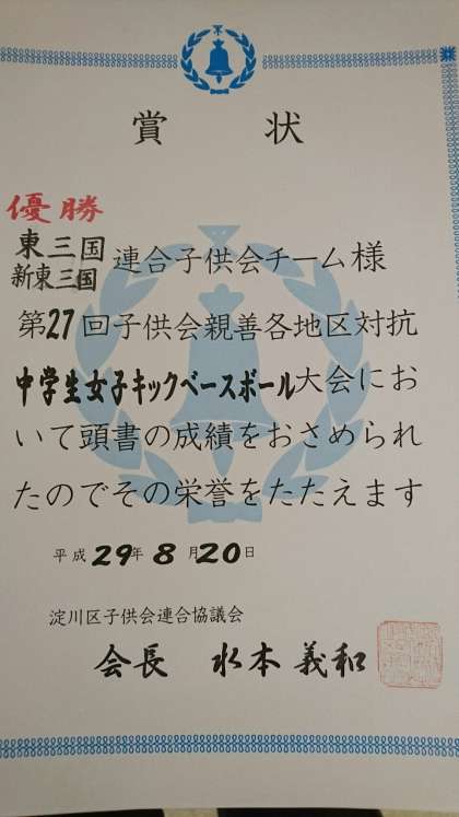 見事、東三国中学校チームが男子ソフトボール 第3位!