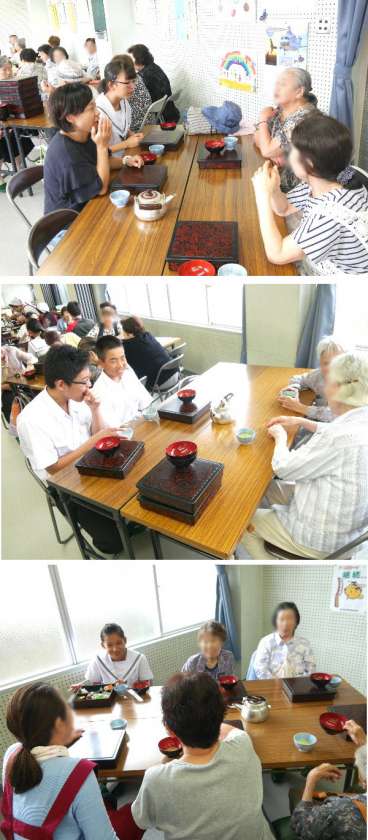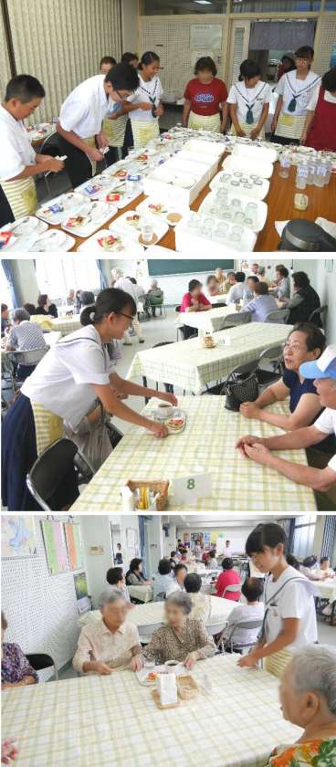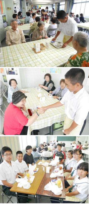 東三国センターで毎月行われている食事会とふれあい喫茶のお手伝いを生徒会役員5人が参加しました。一緒にお弁当をたべながらお話をして交流したり、その後のふれあい喫茶では、コーヒーなどを出すお手伝いをおこないました。なごやかな雰囲気の中、とてもよい交流を持つことができました。ありがとうございました。