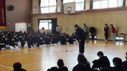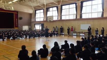 式の最後は1年生と2、3年生の対面式です。