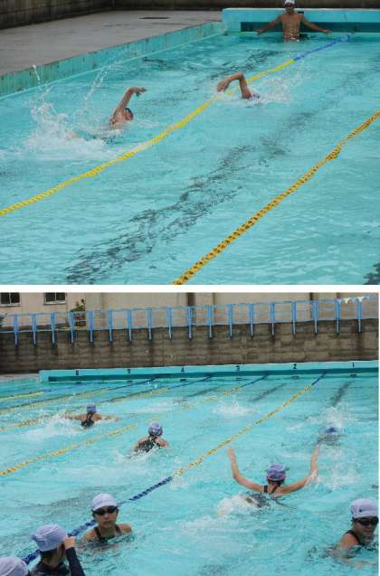 2年生の体育授業はプールです。もうプールも終わりですね。女子はバタフライの練習をしていました。