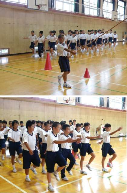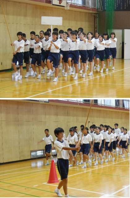 体育の授業では、体育大会にむけた練習が始まっています。2年生は昨年経験しているので、揃って行進もさすがですね。1年生もがんばっています。