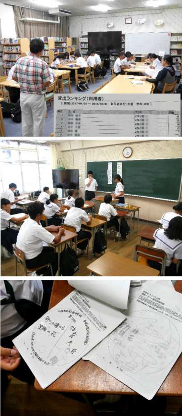 放課後には、生徒会の各種委員会の会議がありました。前期の最後の活動として、反省をしているところも多かったです。図書委員会では、図書館の貸し出しランキングを確認したりしていました。4月から45冊も借りている人もいますね。パソコンで蔵書を管理しているので集計も簡単です。体育委員会では体育大会にむけて、プログラムの表紙デザインを選定していました。各学年の学級代表もしっかり話し合っていました。