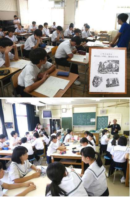 体育大会の練習が始まったばかりですが、2年生では10月末の文化発表会の舞台発表にむけた練習や準備が始動しました。2年は劇を発表します。台本の読み合わせや大道具の準備など、役割分担に分かれて活動していました。