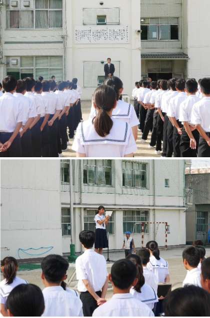 全校集会では、生徒会の各種委員会からの報告がありました。