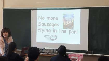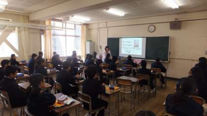 1年生の英語はプロジェクターを用いてのリズミカルな授業です。