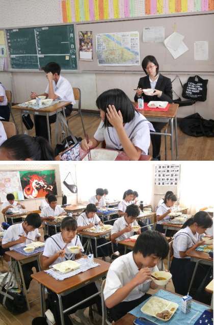 今日の献立は、ごはん、豚肉のあまから焼き、みそしる、オクラのおかかいため、牛乳です。3年生はしっかり食べて残食もすくないです。ごはん大盛りでおかわりする生徒もたくさんいます。しっかり食べて、午後の体育大会の練習でがんばりましょう。
