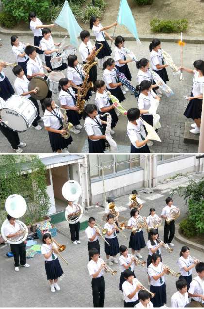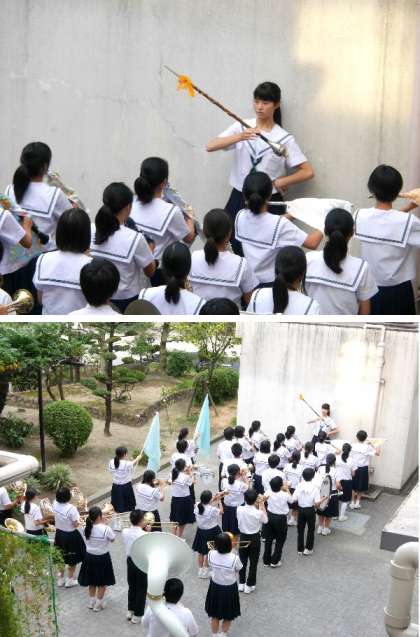 放課後に、吹奏楽部が中庭で、行進曲の練習をしていました。とても明るくうきうきするような音楽が聞こえてきます。体育大会が近づいてきました。