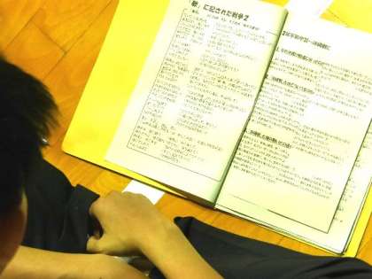 2年生では平和学習として、沖縄戦について学習しています。沖縄のよく聞く「歌」にも、いろいろな思いや意味があったのですね。DVDを見ました。文化発表会でも沖縄についての劇をする予定です。