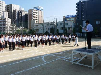 また、校長先生からは、昨日のジュニアリーダのクリーンウォークにちなんで、ワールドカップサッカーでのサポータの話と、何気ない一言が人を傷つけるので注意をしました。