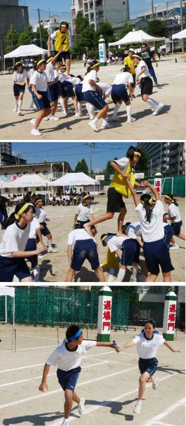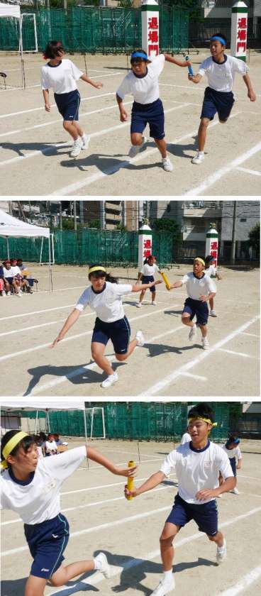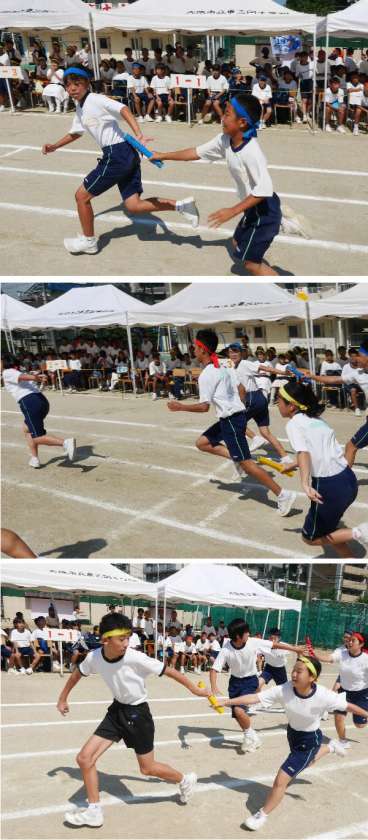 体育大会の様子。2年学年競技、男女混合スウェーデンリレー