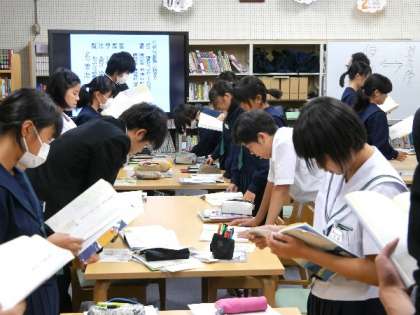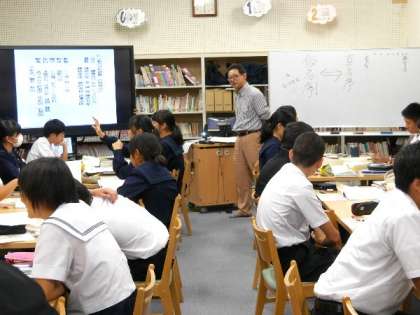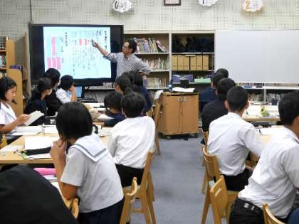 3年生の国語で研究授業がありました。聞く力をつけるトレーニングのあと、和歌について学習しました。